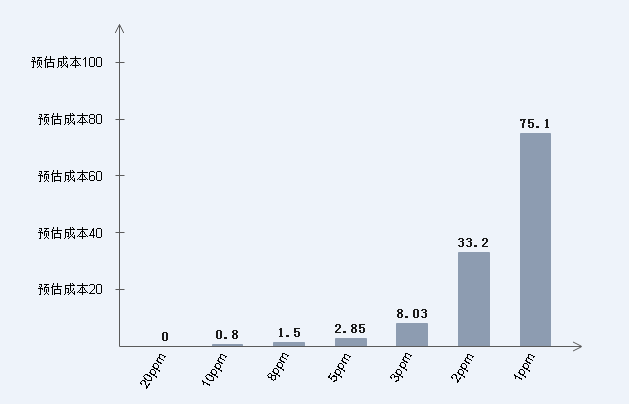 2.達(dá)標(biāo)前提下從20ppm做到1ppm 污泥產(chǎn)量: