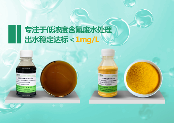 根據各行業廢水水質特點以及工藝特點,環瑞研發團隊開發出了GMS系列的新型深度除氟劑,主要應用于低濃度含氟廢水處理,新型深度除氟劑進入廢水后,經復配物催化,會產生大量具有“核環”結構的化合物,通過羥基質子化和水合作用導致其原位解離,氟在多個羥基位點快速取代,形成穩定的配合物;同時因正電荷密度降低,加速配合物聚集沉淀,實現游離態氟向顆粒態氟的轉化,再經高分子絮凝劑搭橋、捕捉等作用,快速實現泥水分離,達到廢水除氟目的。