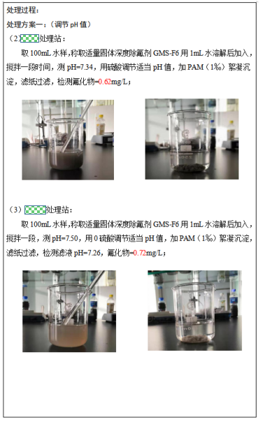 1) 通過以上實驗數據可以看出,使用我司固體除氟劑,可以將廢水中氟化物降到1mg/L以下,相比同類技術、產品,用量減少30-50%,噸水處理成本低。