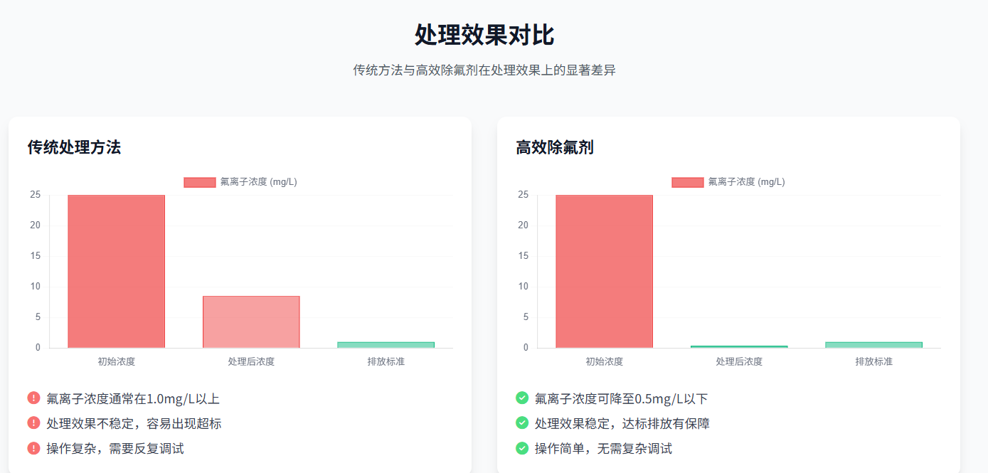 因此,含氟廢水并不總是超標(biāo),但如果不采取有效的處理措施,確實(shí)容易出現(xiàn)超標(biāo)問題。例如,一些企業(yè)在使用傳統(tǒng)石灰沉淀法時(shí),由于pH值控制不當(dāng)、反應(yīng)時(shí)間不足或鹽效應(yīng)等因素,導(dǎo)致氟化物去除率不理想,出水氟含量仍高于1.0mg/L,甚至達(dá)到10mg/L以上。此外,一些企業(yè)雖然采用了化學(xué)沉淀法,但未結(jié)合高效除氟劑使用,導(dǎo)致處理效果不穩(wěn)定,出現(xiàn)“反復(fù)加藥、效果不穩(wěn)”的困境。