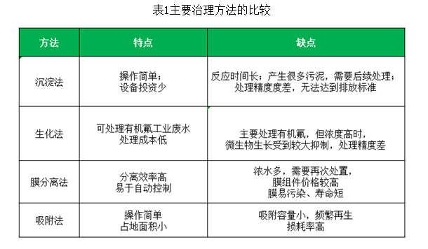 那么廢水中氟化物過高應該怎么處理呢?(如表1)