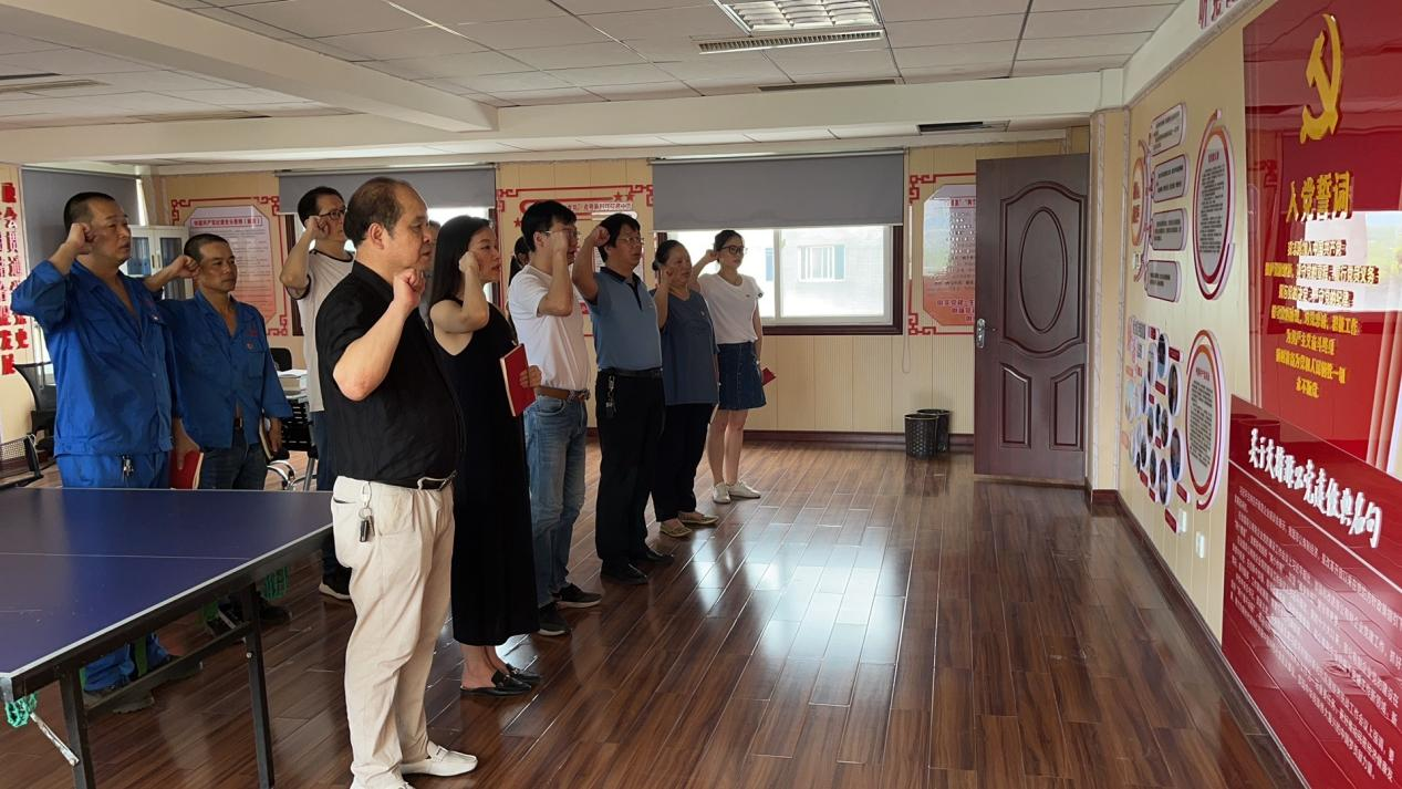 在黨建活動室,全體黨員、預備黨員舉起莊嚴的右手,在黨員孫銳同志的領誓下重溫入黨誓詞,八十個字,字字如千鈞,它在時時提醒每一名黨員不要忘記入黨初心和莊重的承諾,入黨不是一陣子的事,而是一輩子的事。特別是在民企的黨員更要嚴格要求自己,摒棄雇傭心態,拿出主人翁精神,永遠保持一顆真誠的心,牢樹全心全意為人民服務的思想,在黨為公,在黨奉獻,永不言棄。